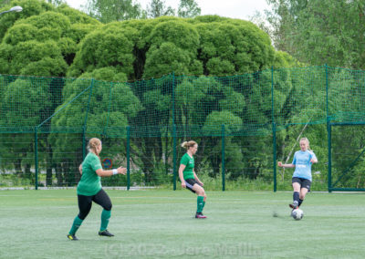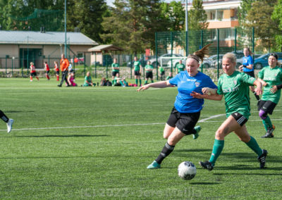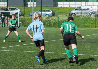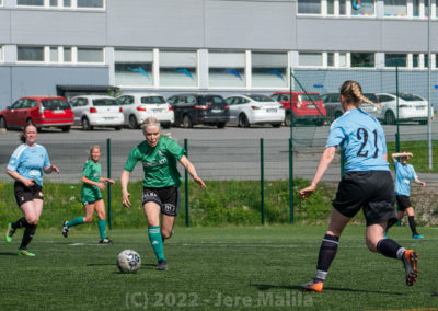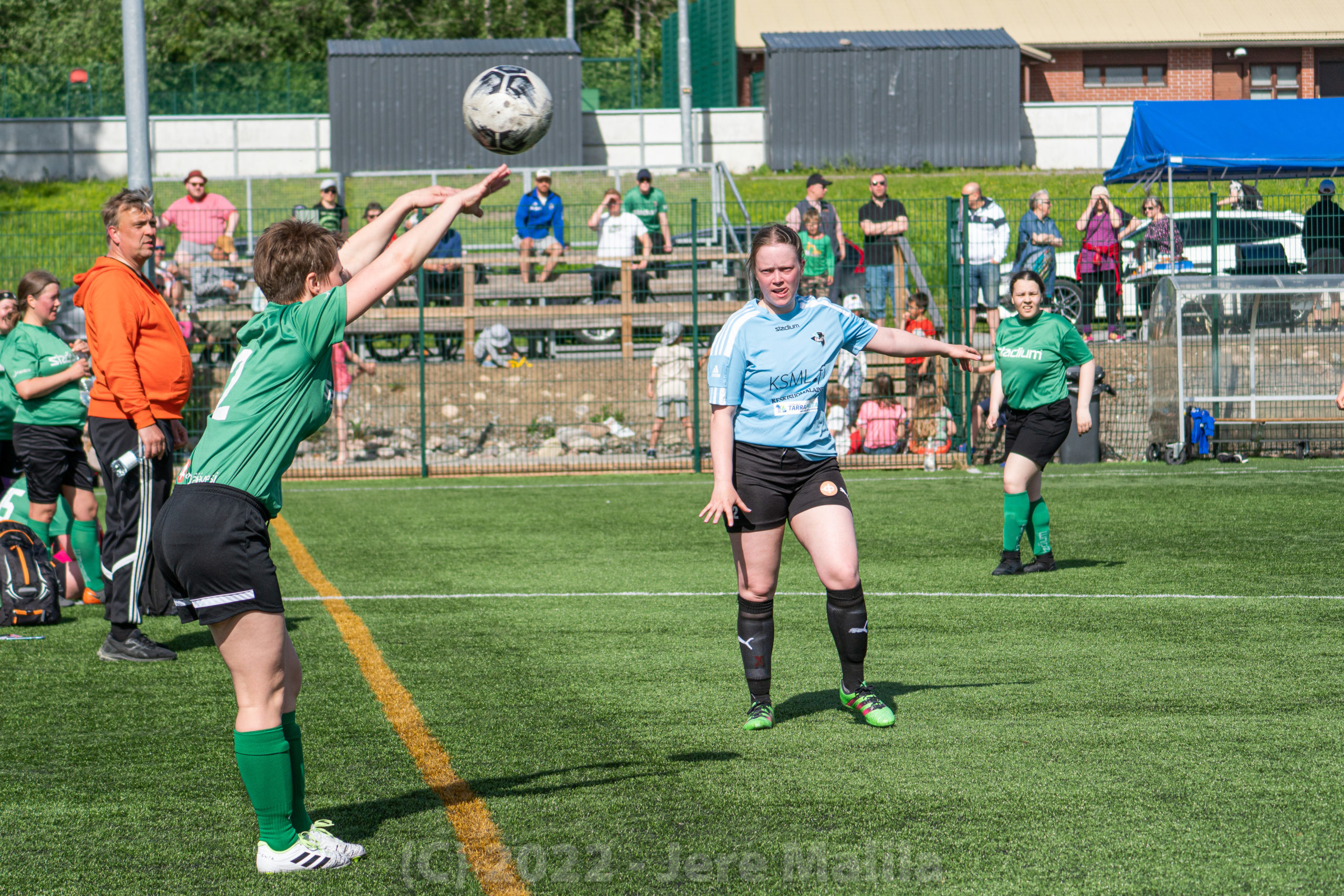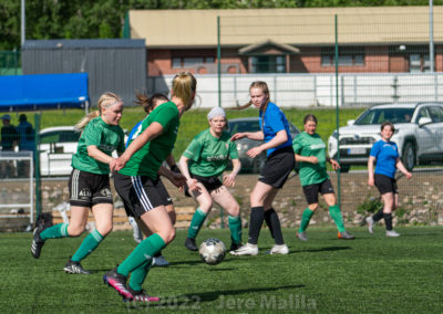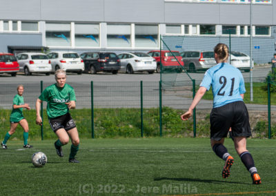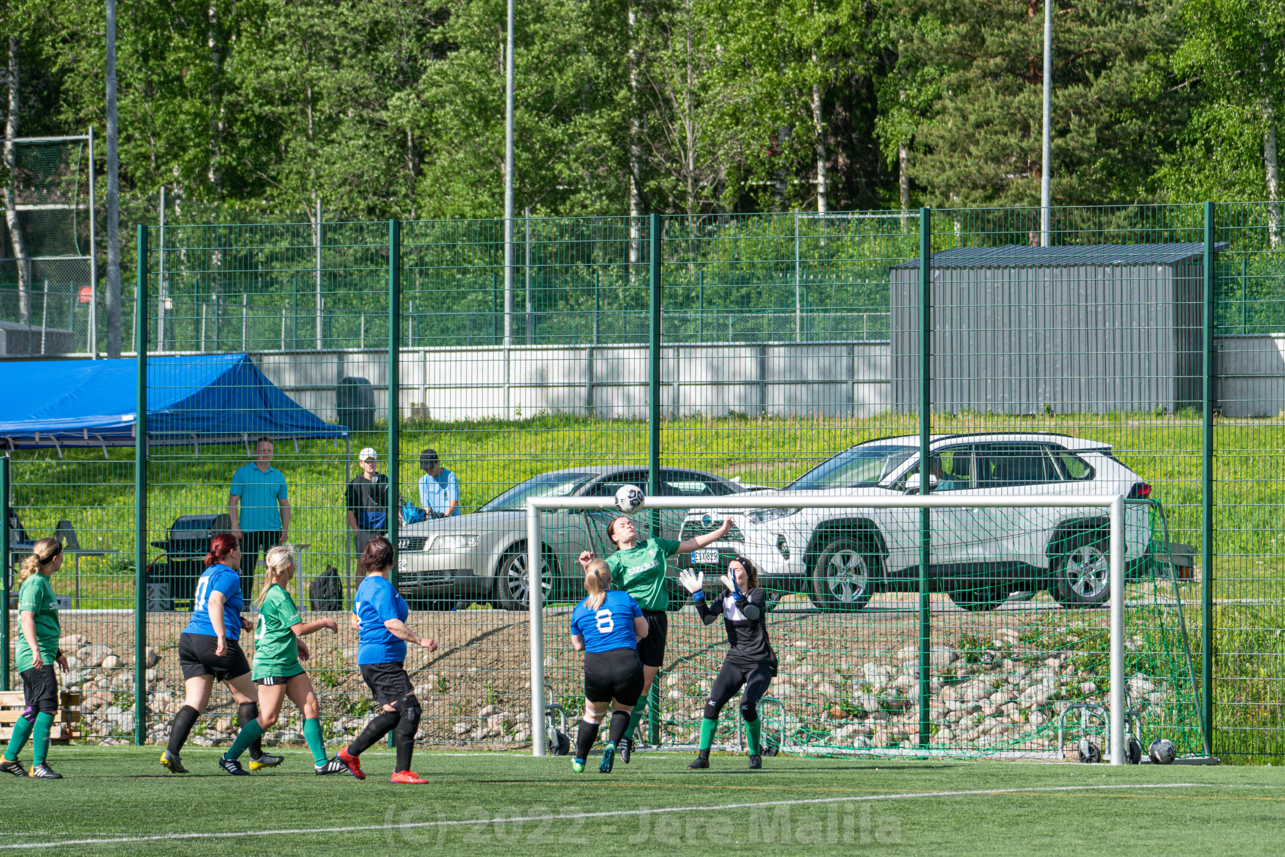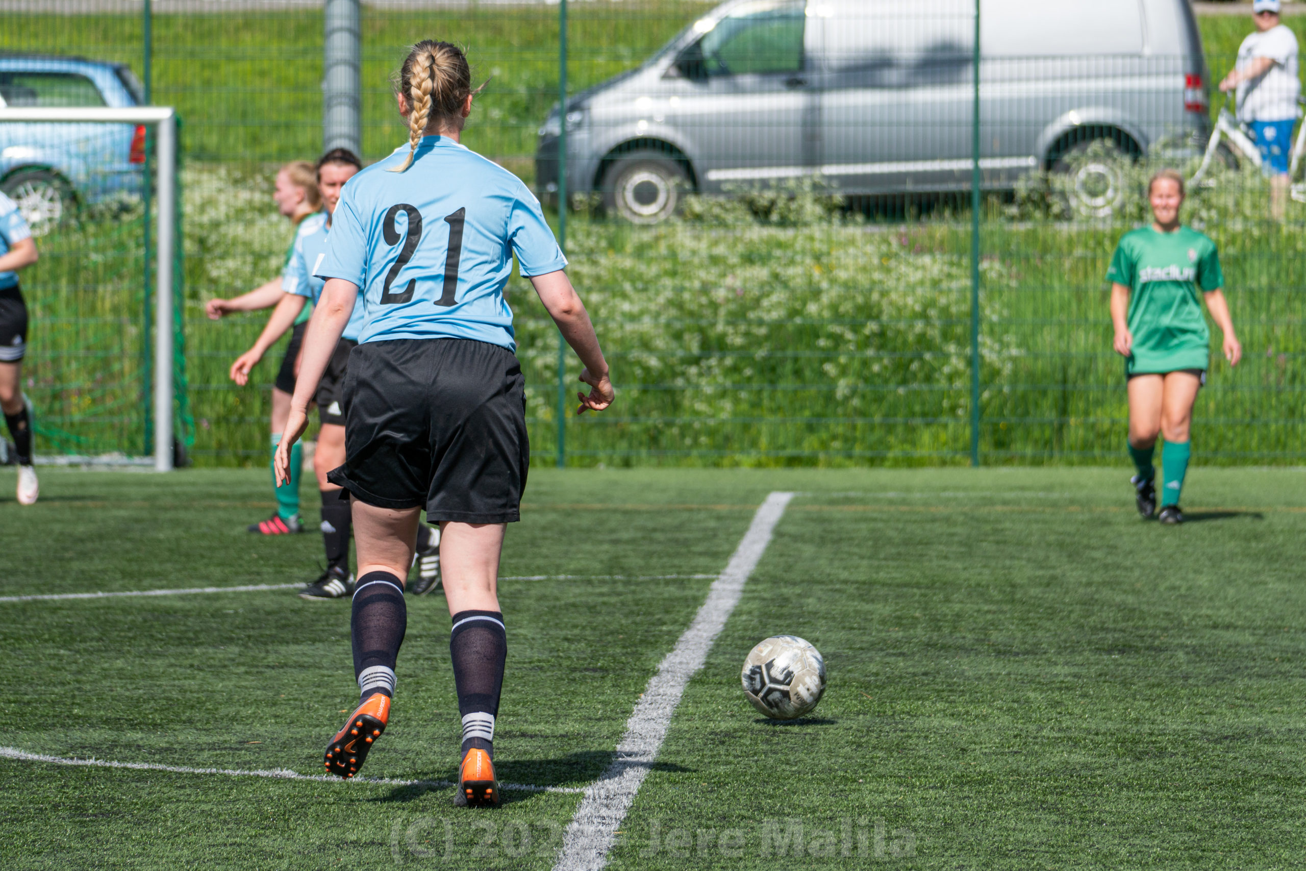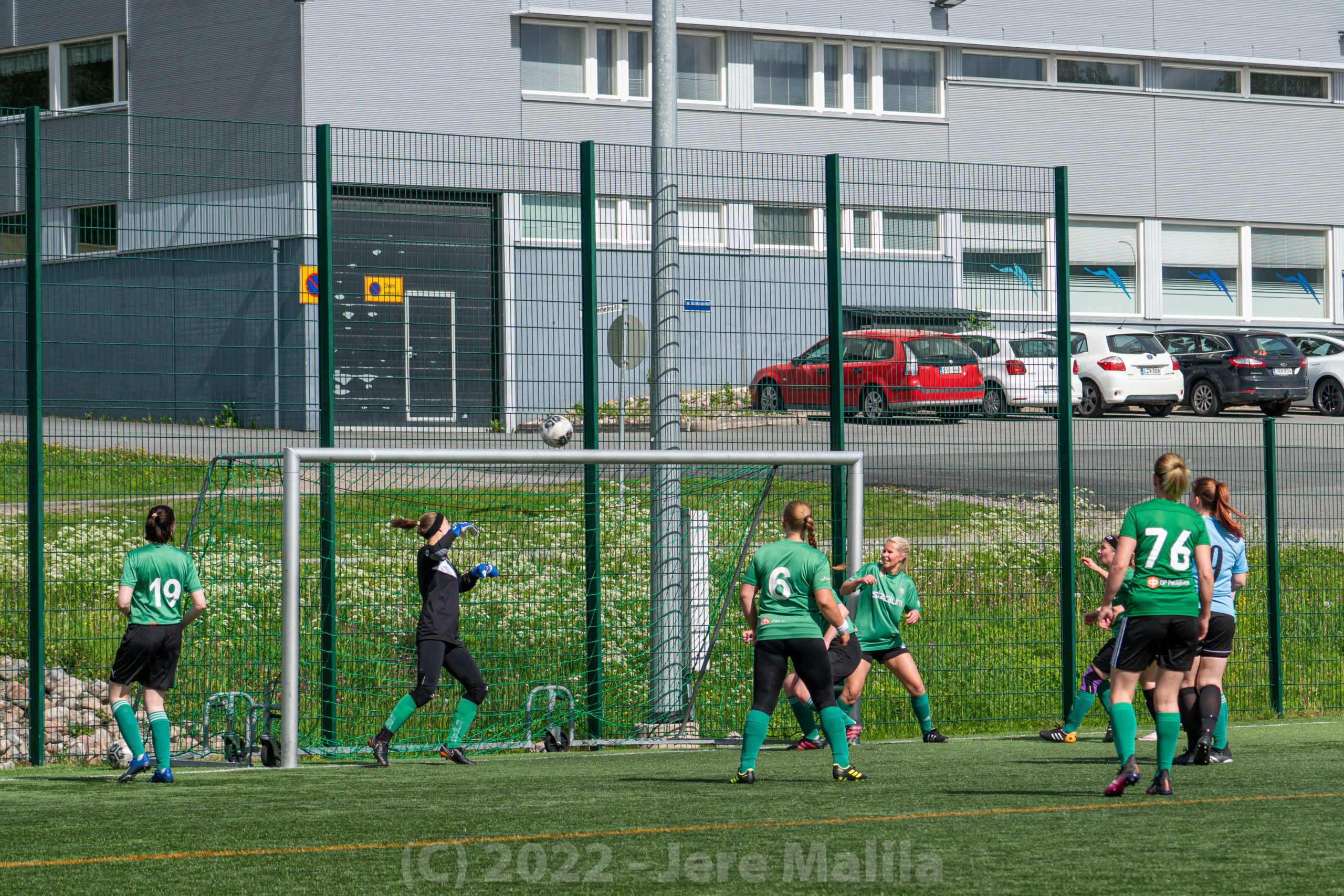 Naisten futiksen pelipäivä 5. divisioonassa saatiin viedä lävitse aurinkoisessa ja kauniissa säässä. Naisten formaatti on hieman poikkeava, sillä pelit pelataan puolikkaalla kentällä ja normaalia pienemmällä 1 + 7 pelaajamäärällä. Kentän pienuudesta johtuen on yksi erikoissäätö: maalivahdin pelinavaus ei saa suoraan annettuna ylittää puolta kenttää.