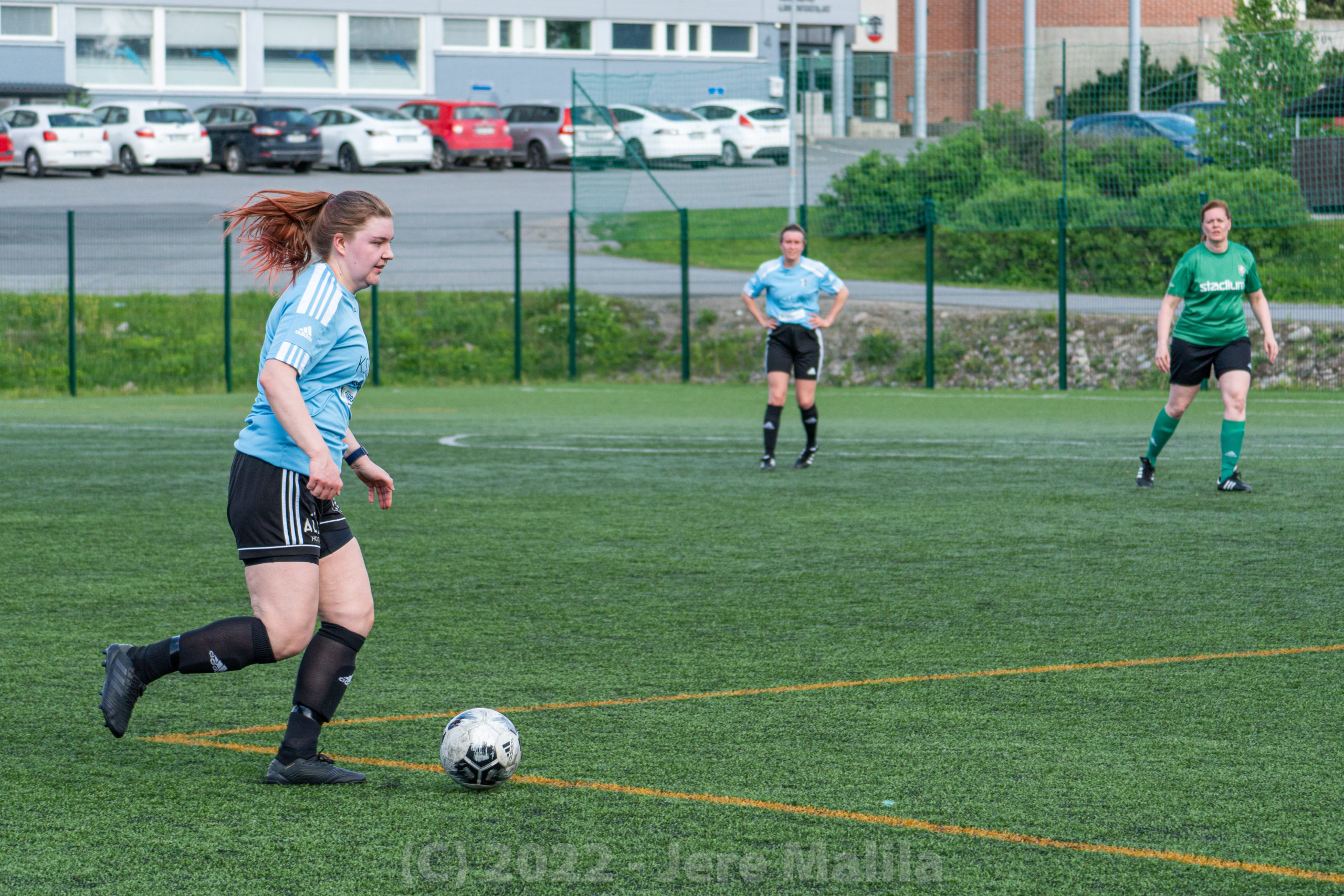 Toiseen peliin lähdettiinkin edellistä peliä paremmalla ilmeellä. Liekö joukkueen valmentaja Sami Jylhä pitänyt minkälaisen motivaatiopuheen edellisen pelin jälkeen, mutta keskikentän palloihin mentiin jämäkämmin ja päättäväisemmin heti pelin alusta saakka. Aggressiivisempi pelitapa toi myös tulosta kun Taimi Hakkarainen laittoi pallo häkkiin yhdennellätoista peliminuutilla. Tämän jälkeen peli eteni kohtalaisen tasaisissa merkeissä, mutta harmillisesti FCS pääsi tasoittamaan ensimmäisen puoliajan viimeisellä minuutilla ja lyhyelle erätauolla lähdettiin 1-1 tuloksessa.